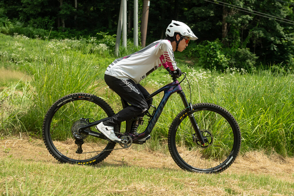 急坂でペダルを強く踏み込んだ際、フロントタイヤが浮き上がってしまうのを防ぐことができます。前輪にしっかりと重さを乗せることで、狙ったラインを正確にトレースできるようになります。